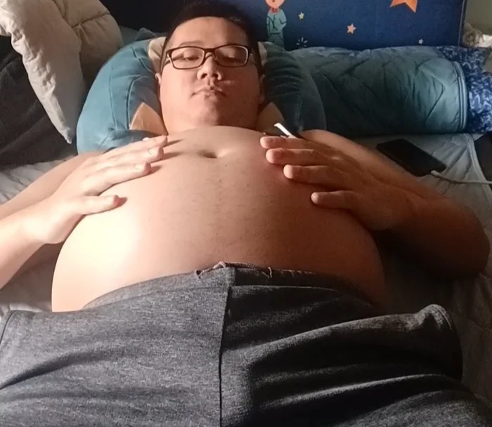 肚子膨脹並且射精(Belly inflation and cum)
